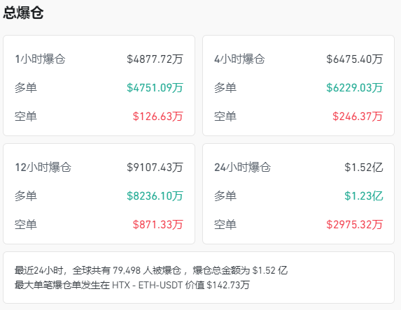 Coinglass网站数据显示,过去24小时内,加密货币投资者共有近8万人爆仓。